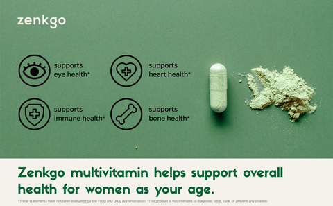 Women's Multivitamin + Probiotics by Zenkgo, Supports Joint & Bone, Brain & Heart, Eye Health, Energy, PMS Relief, Skin, hair & nails, Turmeric, Coq10, Ginkgo, Lutein, Black Cohosh, Vitamins A, B6, B12, D3, K2 (60Ct)